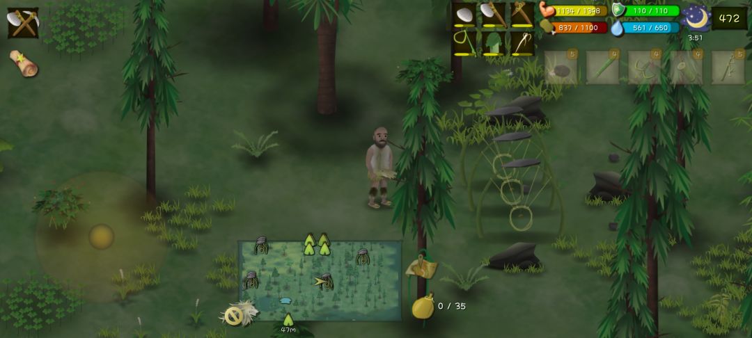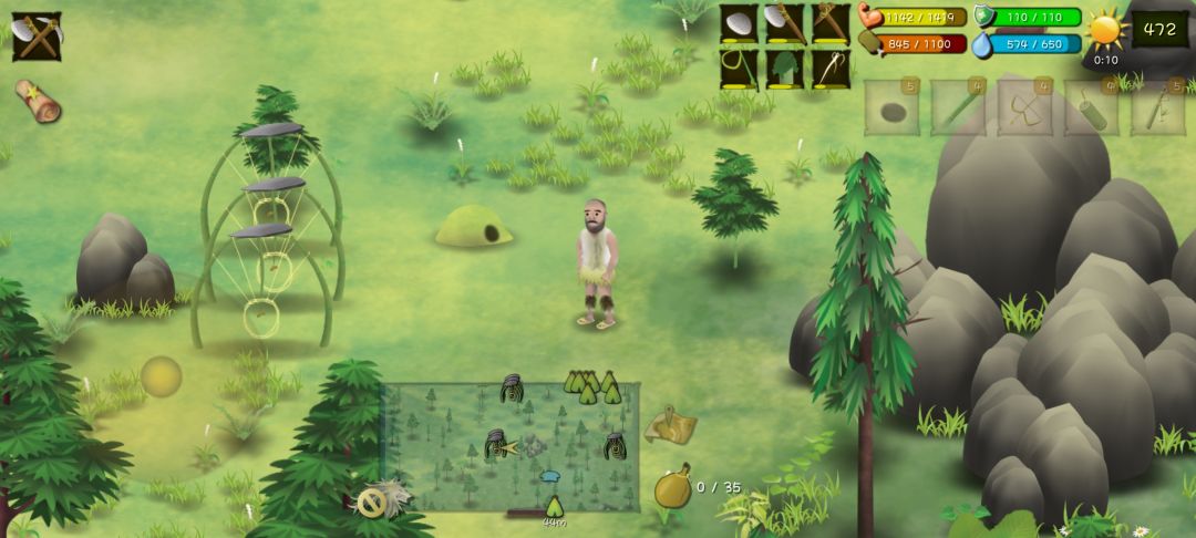 这时候看任务刷新第一个和第二个可以看视频或者2萝卜购买,利用已有资源快速完成(吃喝不是任务就渴着饿着,或者制作陷阱快速掉体力)