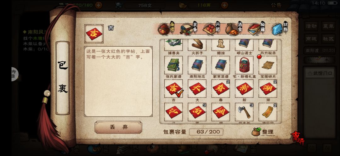 烹饪炼丹,素材少的朋友建议一个一个炼(炼丹没素材或者新号的朋友可以找南阳渡打工,烹饪便宜点洛阳东市肉铺旁边买三个青菜种子,种一个得三个青菜,刚好能做一盘炒青菜,没有厨艺要求)