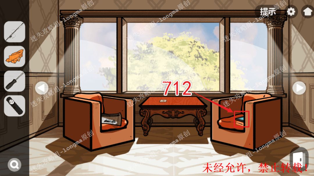103.左转至休息室,在右边沙发上输入“712”,获得【副院长名片】。103