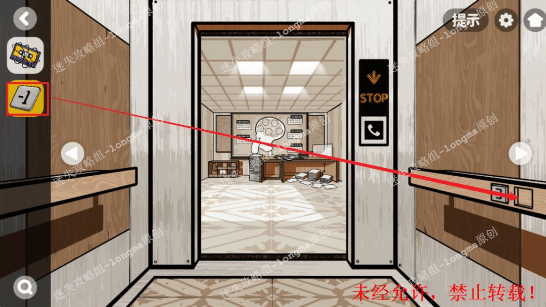 124.右转进入电梯,将【电梯按钮】放入右边凹槽,进入地下一层。124