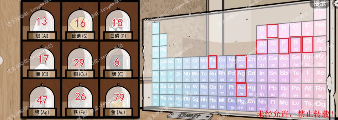 120.查看中间货架,对照元素表,找到每种元素对应的数字。120