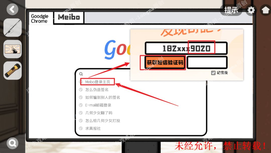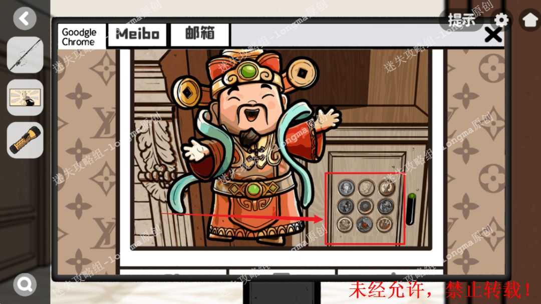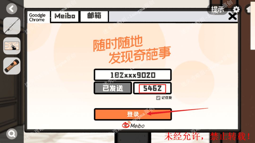 113.“Meibo”账号上输入验证码“5462”,记住财神照片后面的图案。113 113.1