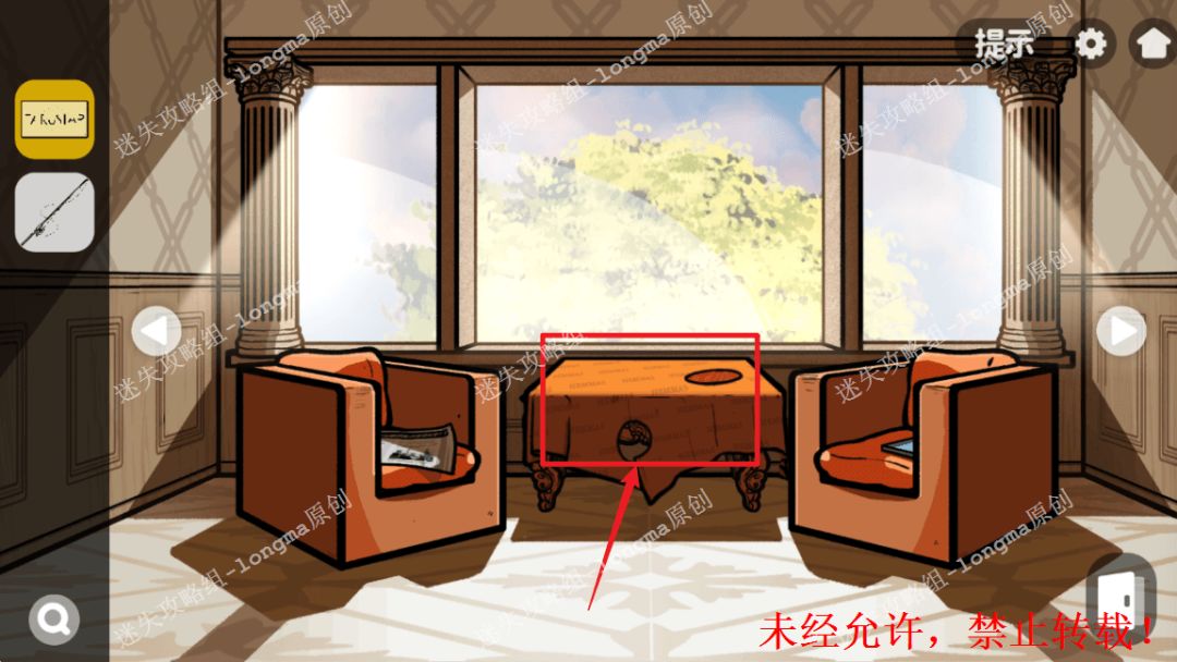 97.右转至休息室,点击桌子获得【幕布】。97