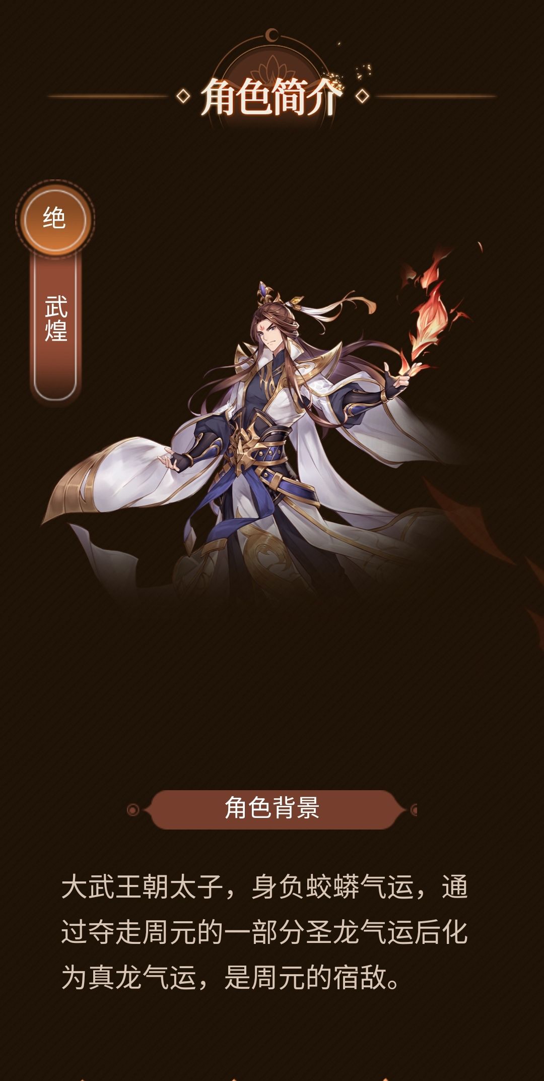 武煌,大武太子,在圣迹之地与男主角周元交战。圣迹之地一战后,肉身被毁,仅剩神魂被圣宫使者救走,现已被周元斩杀。