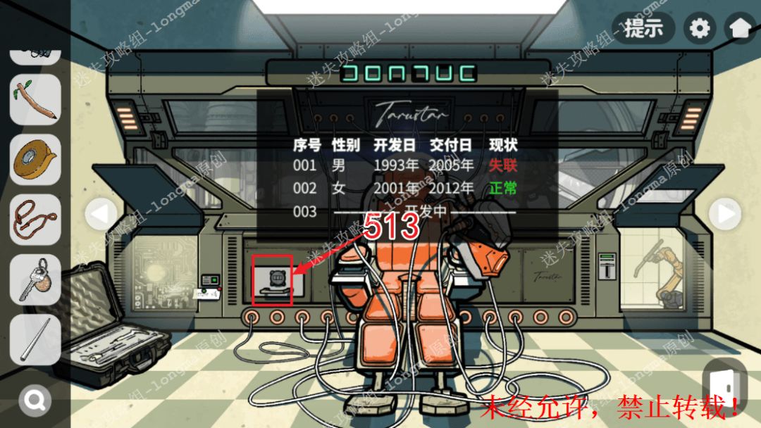 135.右转来到工具箱房间,在电子版右边位置输入“513”,获得【钥匙模具】,将【铅笔】放入“碳笔打磨器”中获得【碳粉】。135 135.1