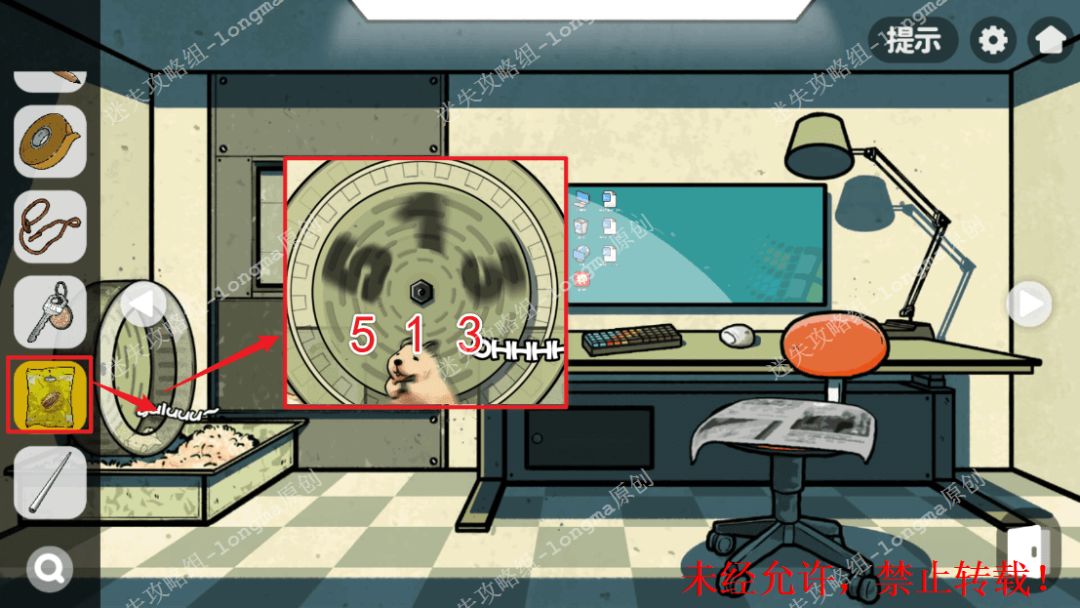 134.查看仓鼠,将【一袋瓜子】交给仓鼠,记住轮盘上显示的数字“513”。134