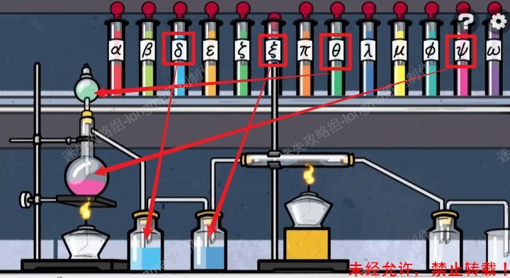 158.右转至试验台处,查看左下角的药箱,对照彩纸颜色,消除“×”位置的药。158