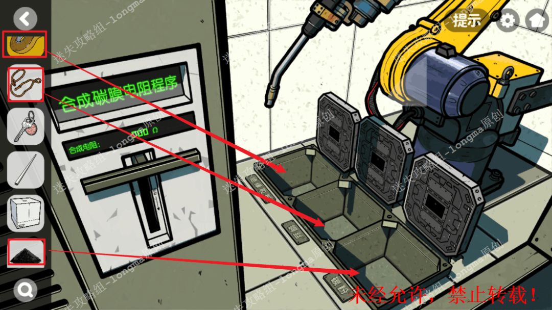 136.查看右边的机械手臂,将【胶带】【碳粉】【铜丝】放入对应的位置。136 136.1