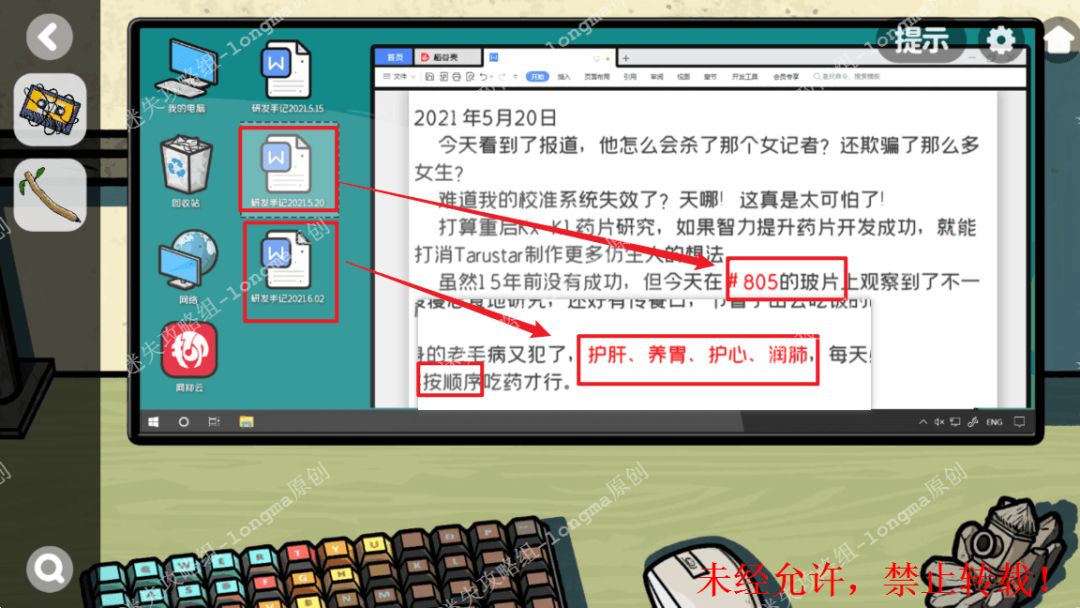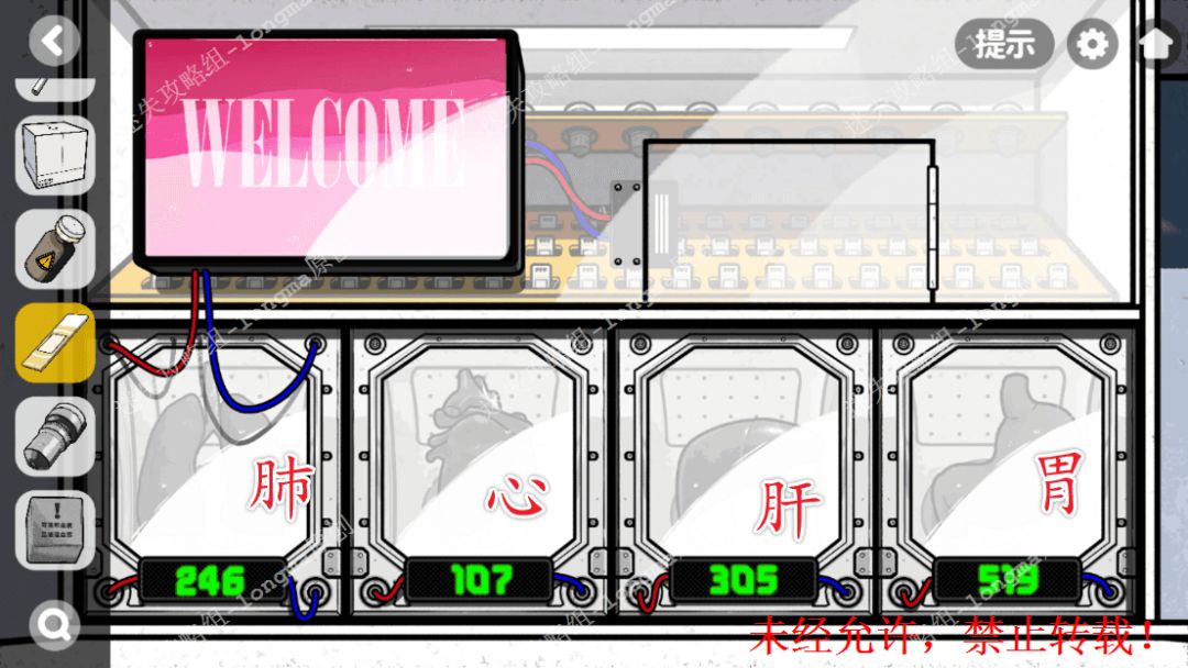 127.查看研发手记,获得线索“805玻片”“肝、胃、心、肺”。127