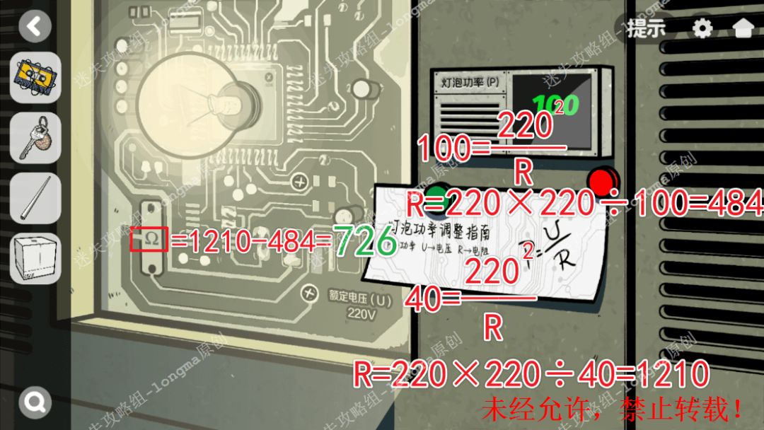 137.查看左边电子版,从书中得知需要40W灯泡,现在功率是100W,对照公式计算出现在的电阻220×220÷100=484,40W需要的电阻220×220÷40=1210,还需要1210-484=726电阻。137