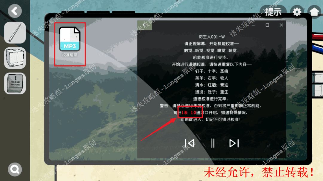 153.右转至音乐符号房间,查看椅子屏幕对照显微镜图案,完成拼图小游戏,点击校准磁带,记住时间“18:10”。153 153.1
