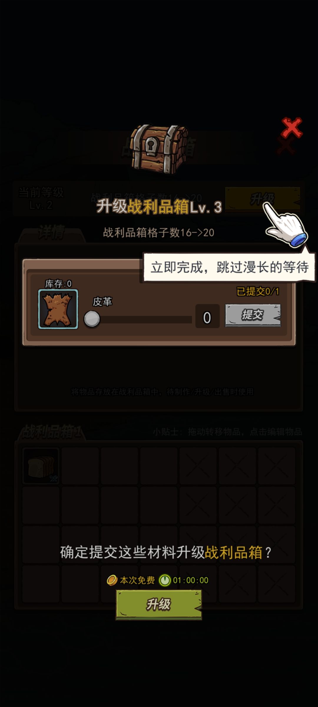 引导前升级了一下仓库,导致无法继续游戏了,也没法跳过,重启游戏也不行,废了