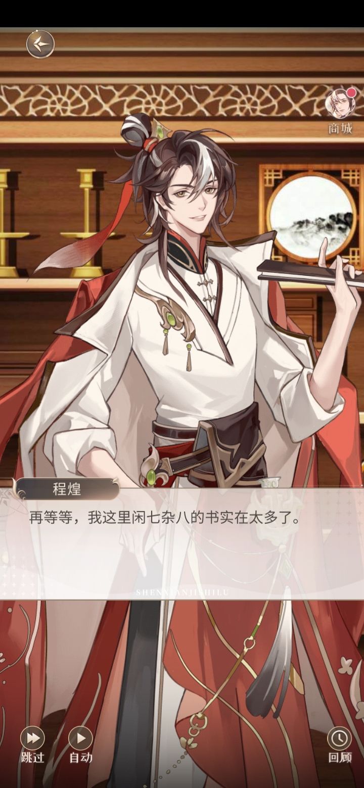 给还没玩到的姐妹们看看羁绊达到10之后去约会过了剧情,一开始就是我在书店发现一本书,里面记载了朱雀从海上振翅飞来,点化了四只动物,也就是后来的这四位神仙啦。