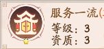 服务一流和无微不至都是增加客栈赚速的资质。这里的星级倍数是5倍,他是没有5星或者5星以上的资质技能所有派遣客栈的话是不会额外增加倍数的。5星资质会增加2倍,6星资质会增加10倍,7星资质会增加30倍,8星是增加的100倍,9星资质是增加的200倍,最高倍数就是星资质。委派食府的话要比委派客栈高2倍的赚钱,所以委派食府的话应该是赚钱最高的了