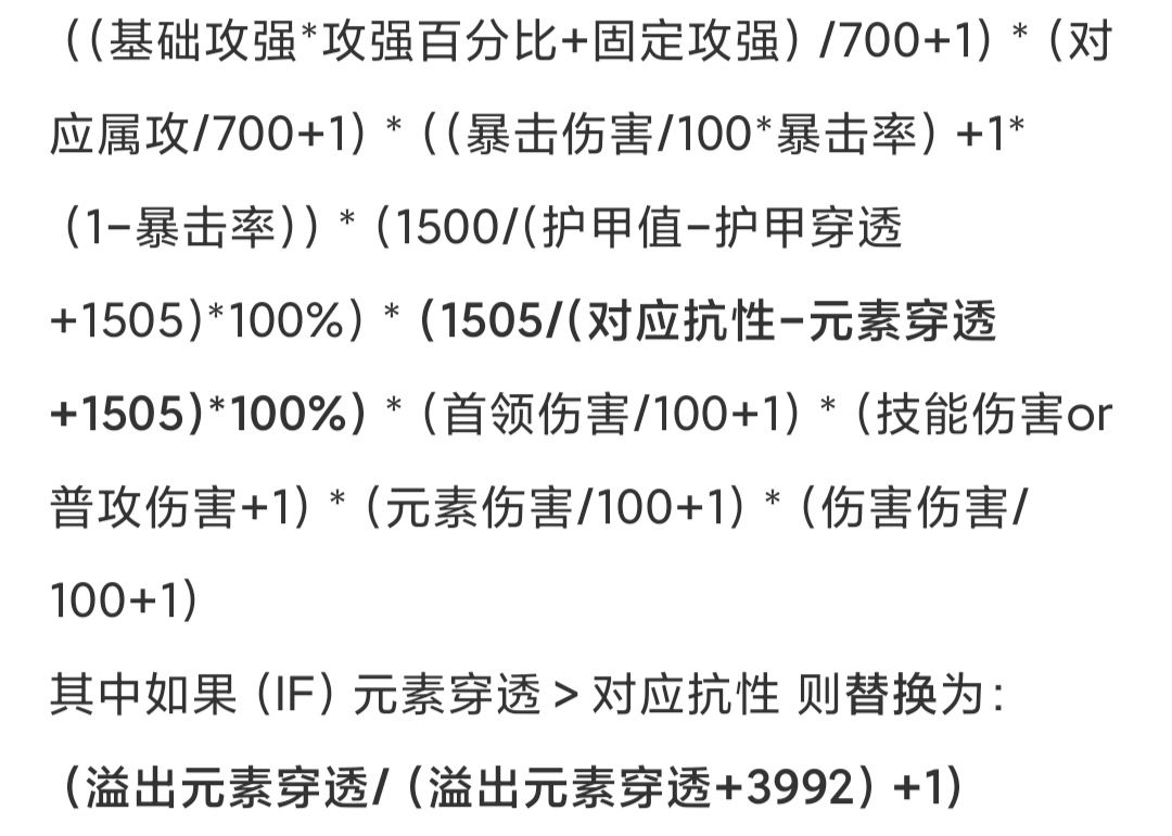 上面也提到了 爆伤比较特殊 机制是每增加100爆伤 爆伤乘区加一倍 但它初始有150的爆伤 并且计入面板 所以关于爆伤的计算公式是这样的