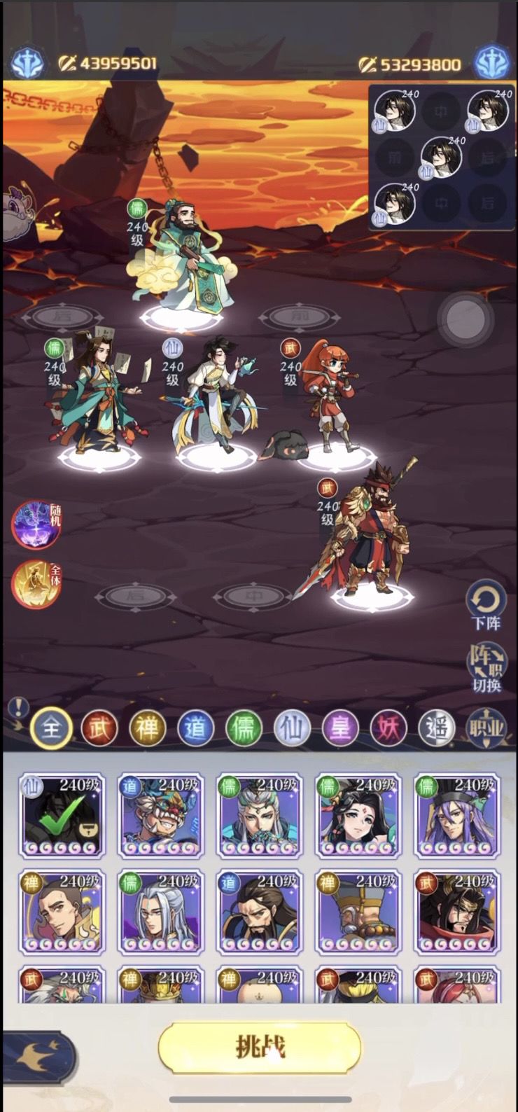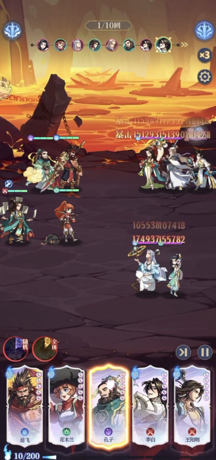 孔子开大,触发李白技能,之后点王阳明技能,之后等待李白技能冷却结束点李白技能和王阳明技能即可过关(术法亮了直接点)