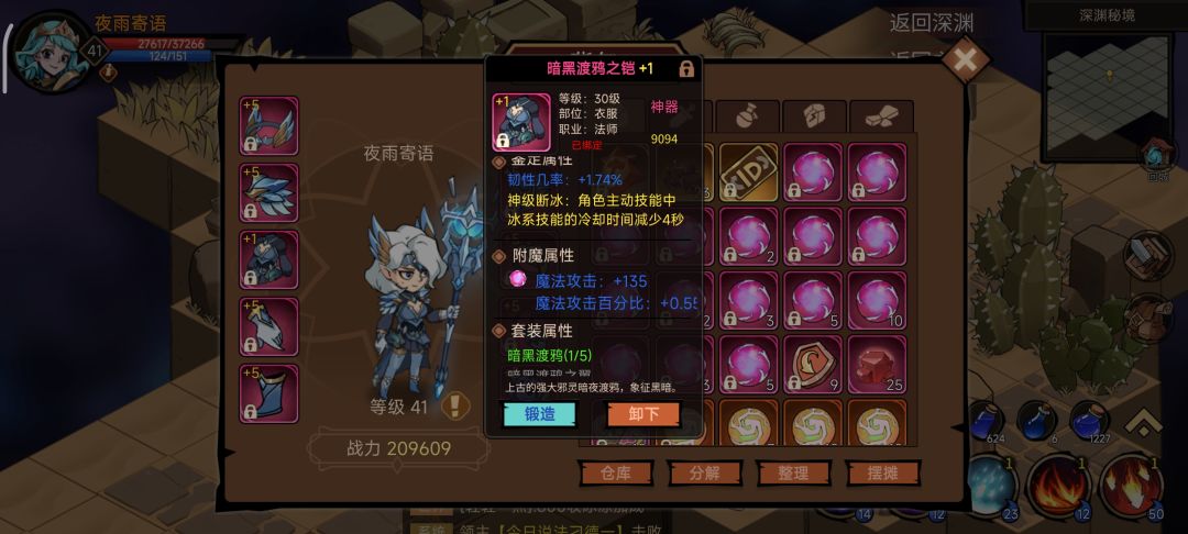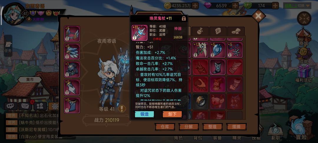 武器的我们带每个等级法攻加成最高的法杖就行了,需要那些伤害加成,魔法攻击力加成,减敌人双抗之类的增伤词缀