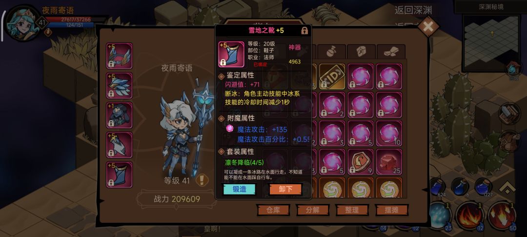 delete首饰我们也带20级的冰雪套就行,价格便宜,加成还高,对冰冻增伤20%,减蓝耗和增加大量冰系加成提升伤害,个人实测用到40级毫无问题。跟我带40级的蚀灵套的伤害差不多