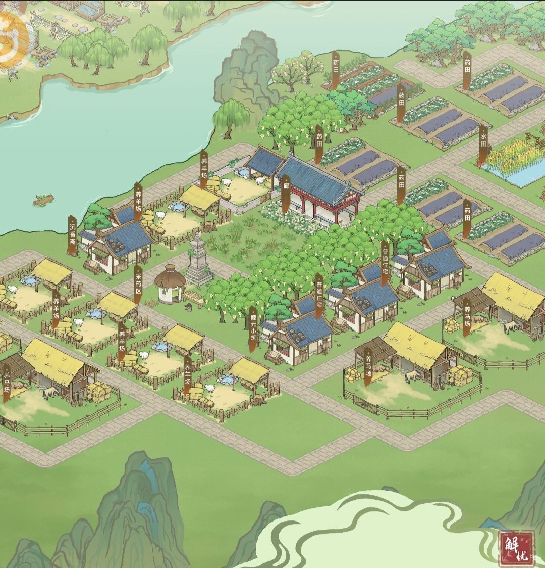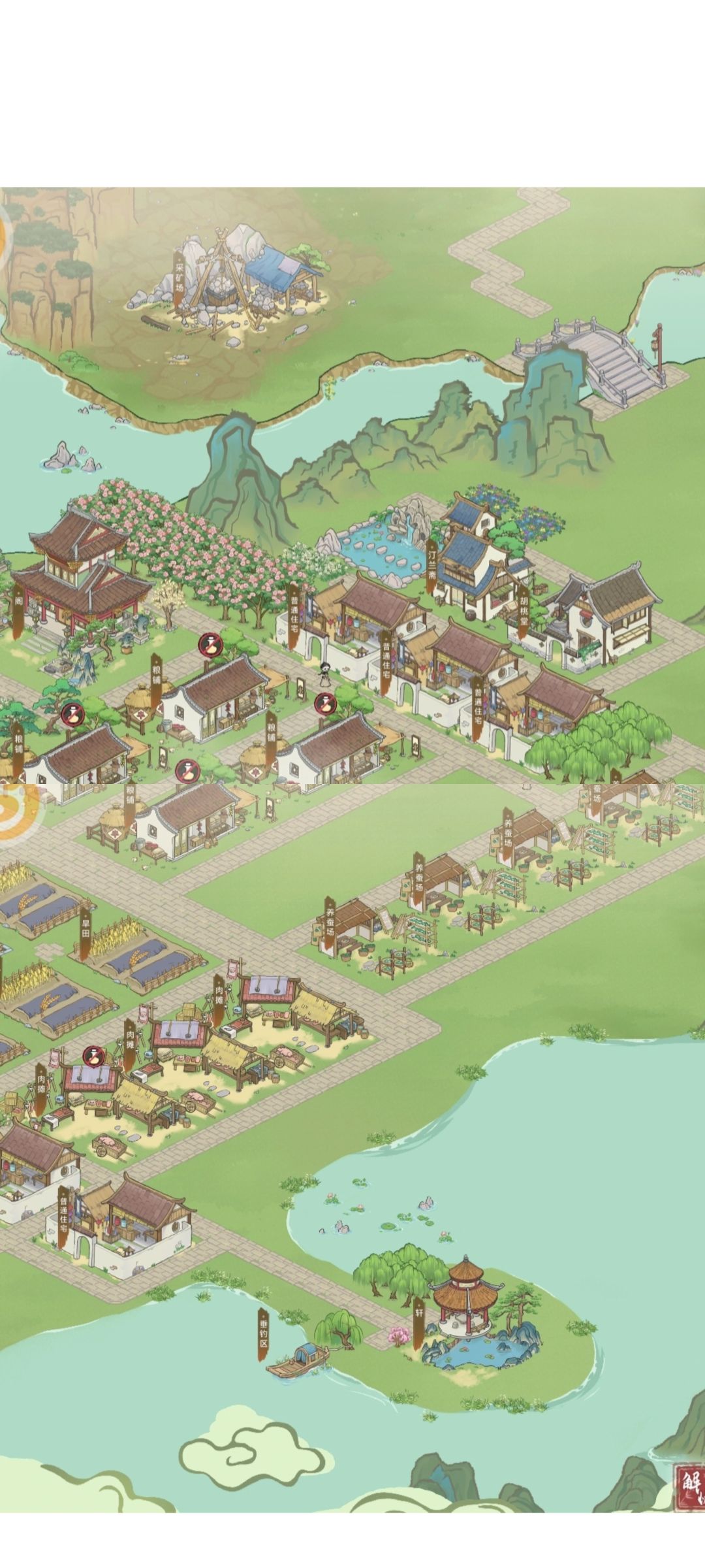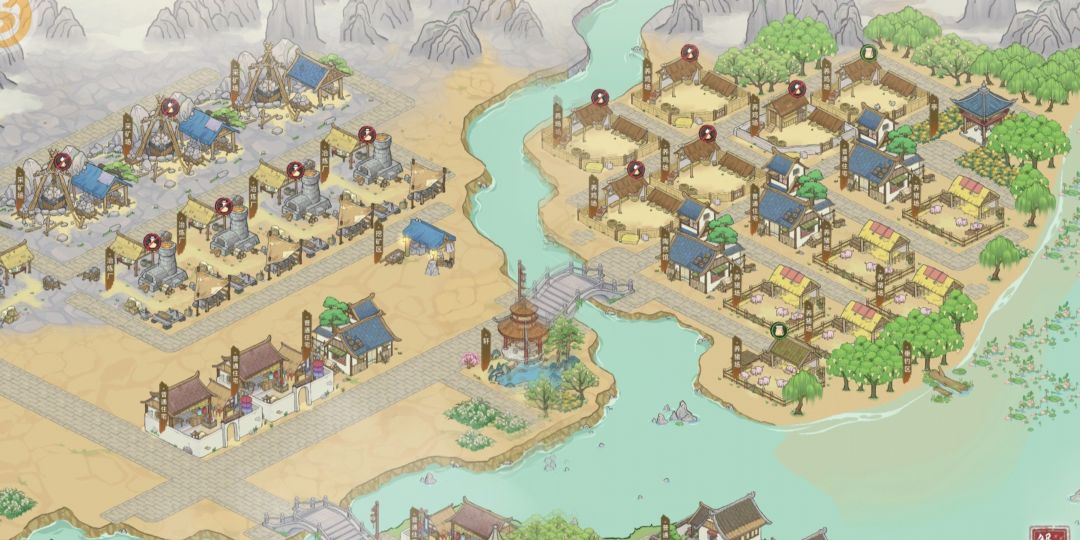 上面两座小岛,放置的布坊和裁缝铺。因为这两个都是6个就满了,后面就不用考虑数量,所以安排在这两个小岛刚刚好,后面不用管。