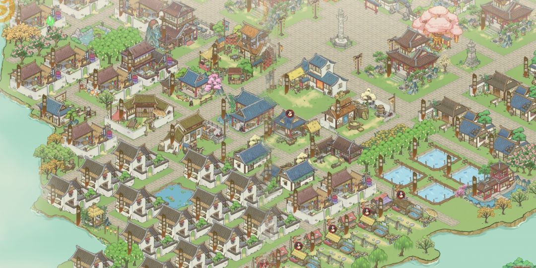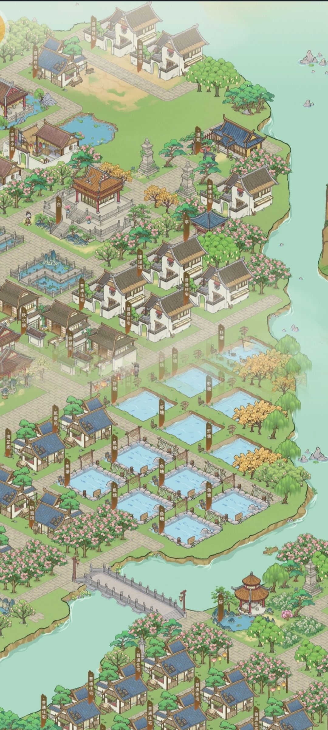 我采用了工作地与居住地距离相近的排列方式。在每一个工作地附近设计房屋位置,并把相应的村民放进去,让村民出门就能工作,避免长途跋涉,降低幸福感(前两天看到说,工作地太远,幸福感会降低,工作效率会降低),然后在这附近设置娱乐场所,简单来说就是让村民心情好,重点来了,通过这种方式,我把所有安排好的房屋税率提到最高,他们的幸福感并没有下降,不知道是不是心情好还是bug。
