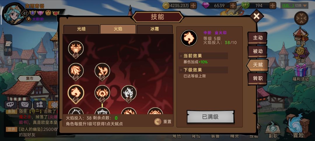 到这里通用的攻击属性技能就点完了,剩下的技能点就用来根据自己选择的流派和技能属性来点光暗火冰加成,如果是玩冰法的话,冰霜那一栏点出减少2点蓝耗会很舒服。