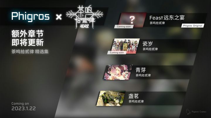 铛铛铛!Phigros与茶鸣拾贰律的二次联动登场!本次更新将于1月22日(即农历大年初一)零点放出!