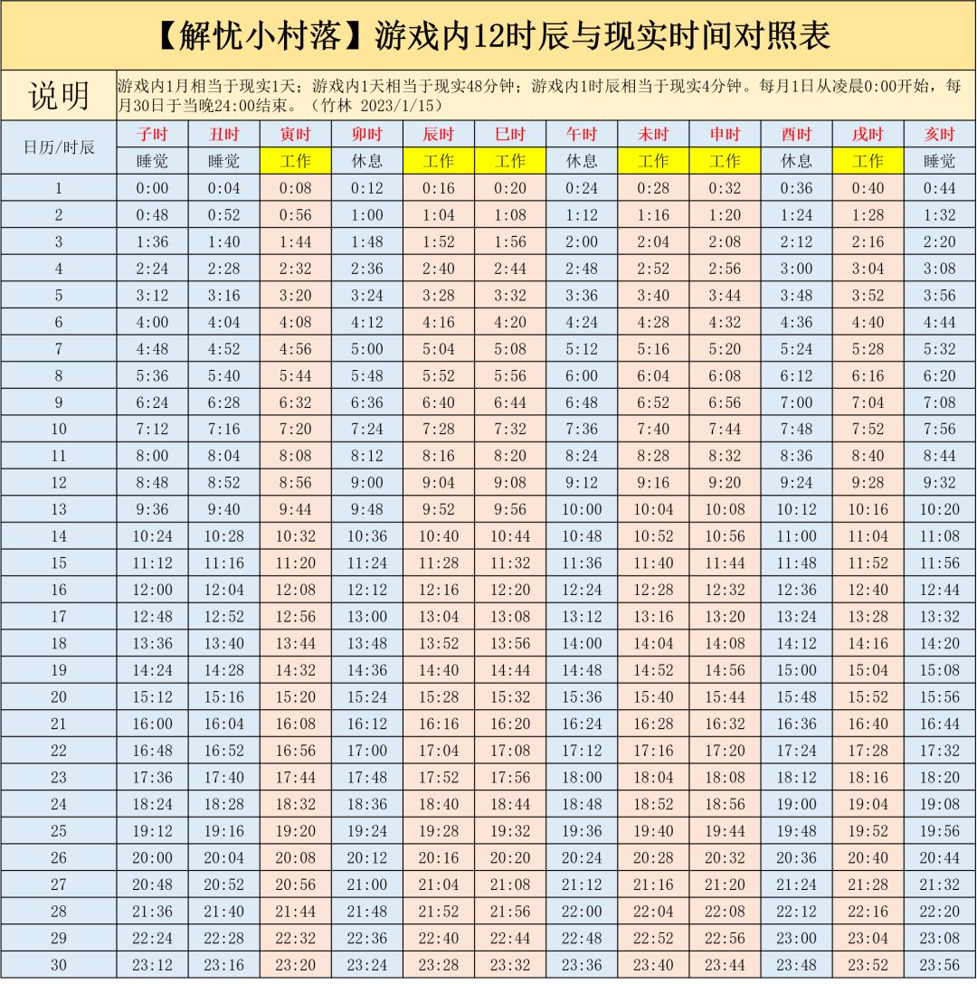 【竹林】解忧小村落建筑与所需居民职业对照、客栈/酒馆/游玩建筑营业时间(最后附历法与时辰对照表,2023/2/26更新)