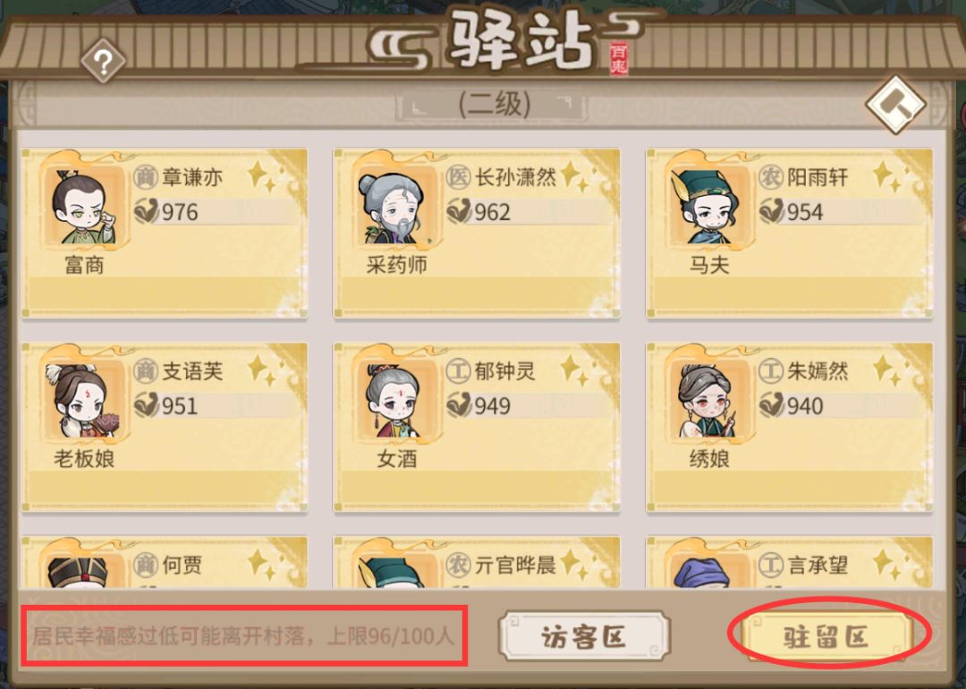 看到这里,明白了吧。那我们要做啥,肯定要把房子住满,再把驻留区放满100人。至于什么人爱喝什么酒,怎么安排居民士农工商医的比例,让酒馆收益最大,那就需要在座的各位继续摸索了。