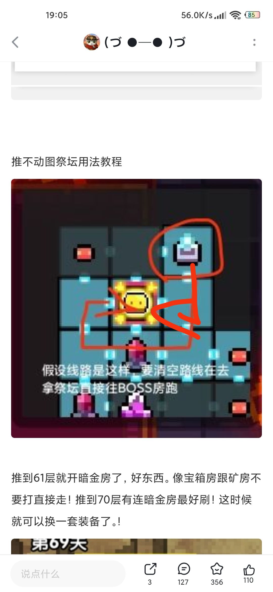 51层后会送一点没屁用的装备。开了直接找到烈焰风车的技能符文装上。61层后会开暗金房这是拿来通100层很重要的东西!最好推到70层。70层资源关有一条路的暗金房!装备用这套。披风穿透够用蜥蜴。穿透不够可以考虑破盾!鞋子无所谓选一件4红孔的就行了!现在改版了必须要全部4红孔才能提升高!