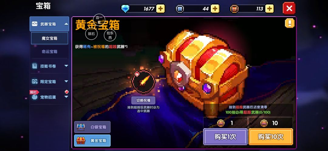 开始的时候花50个黄金币拿到这个箱子就能通100不用多浪费,剩下的留给第三天过了100层抽新水