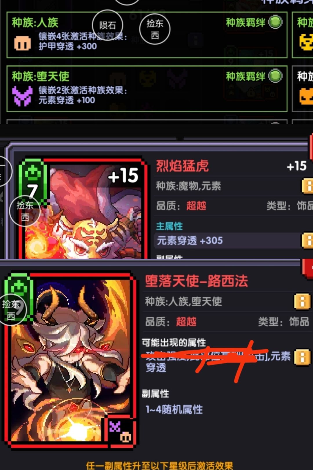 !魂卡优先凑出来人族有300穿透。然后去商城看看有没有老虎卡或者路西法有就买一张。只要主属性是元素穿透就行了。不要在意副属性能强到多少就多少无所谓!!