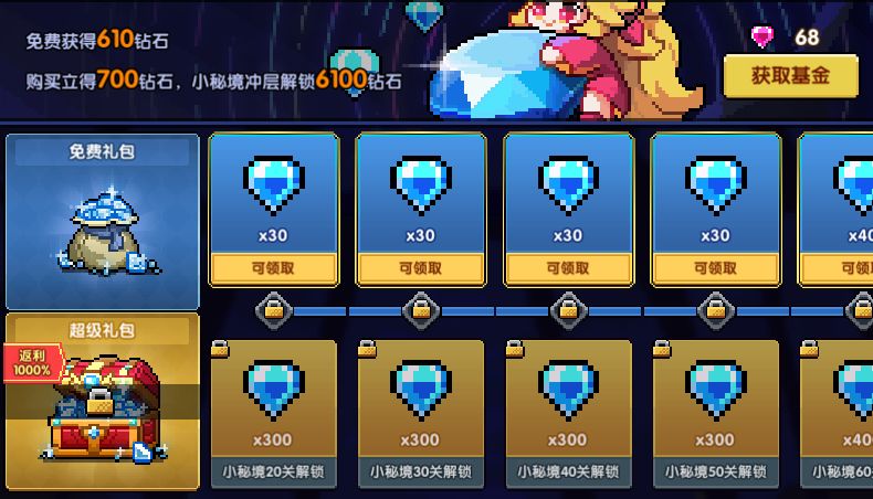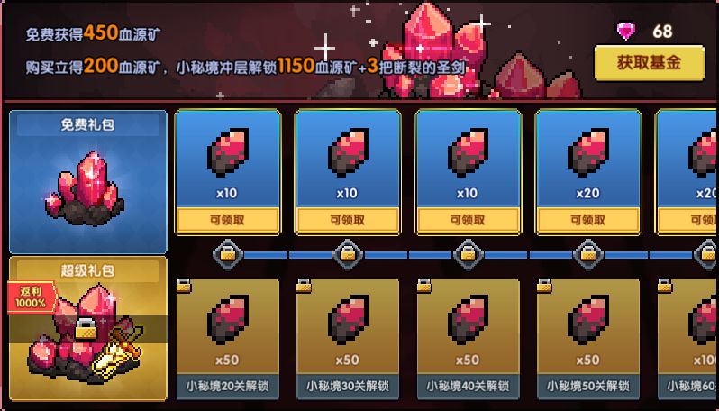 商城新增钻石基金和血源矿基金!通关指定小秘境层数,即可获得血源矿和钻石豪礼。