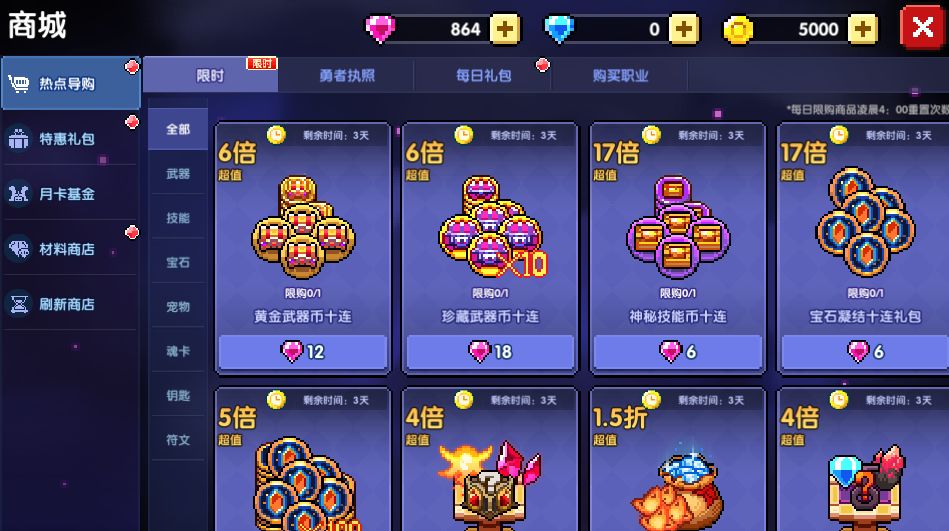 商城礼包界面优化升级!同屏能看到更多数量的道具礼包,方便勇者们查找与对比。