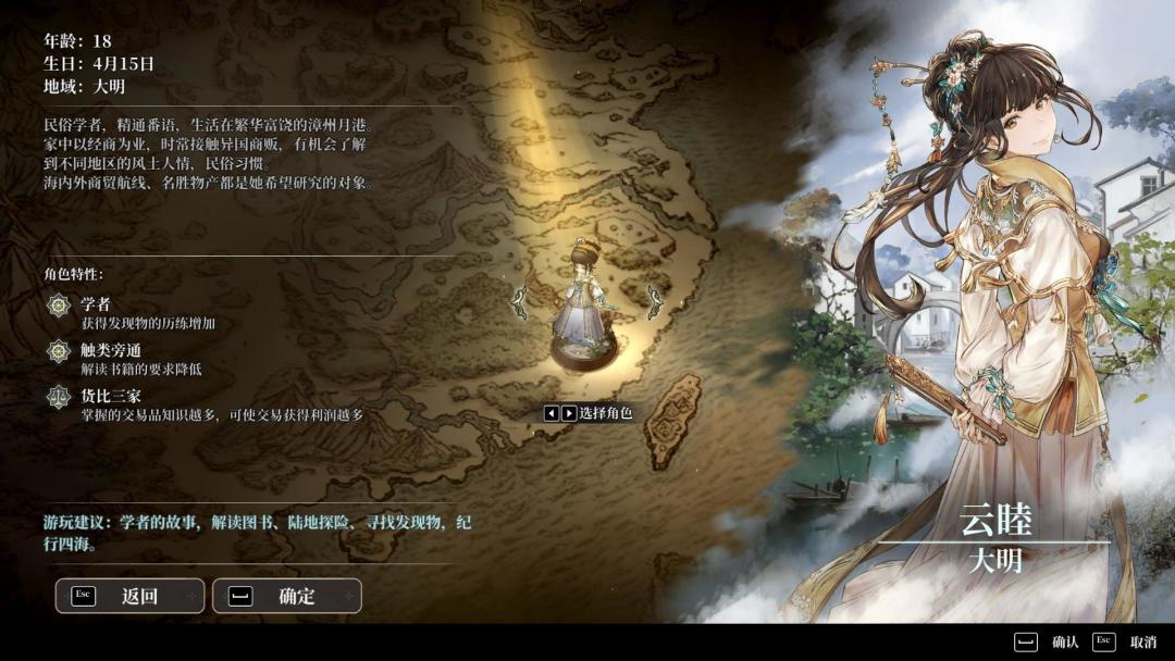 在游戏中,她的技能主要针对贸易和陆地探索两方面。身为民俗学者,云睦对各个国家的风土人情都有所耳闻。因此,解读书籍更得心应手。