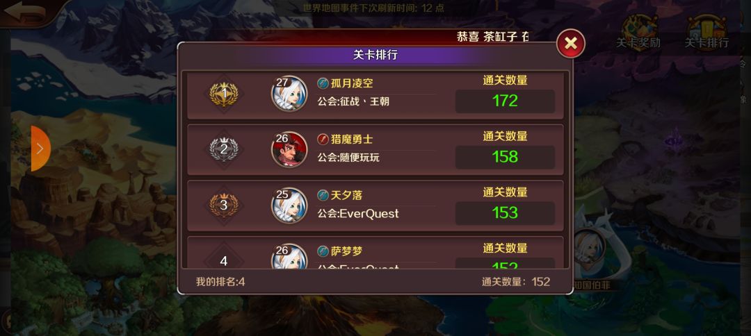 接下来就是跟着指引继续该升什么就跟着点,卡住了就开始推图和冰晶洞窟,精灵神殿能走就走了,异界巨像是每晚20:00结束,决斗场是21:00,想多领点排名奖励可以卡着点把次数清空。