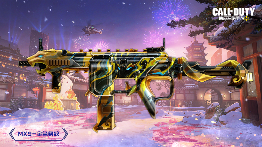 MX9-金色条纹犹如一只迅猛的野兽,时刻准备着向猎物发起冲击。枪口处采用了猛兽造型进行装饰,蓝色的眼睛紧盯目标,野性十足。金色的条纹布满枪身,宛若突如其来的闪电,总能让敌人措手不及!