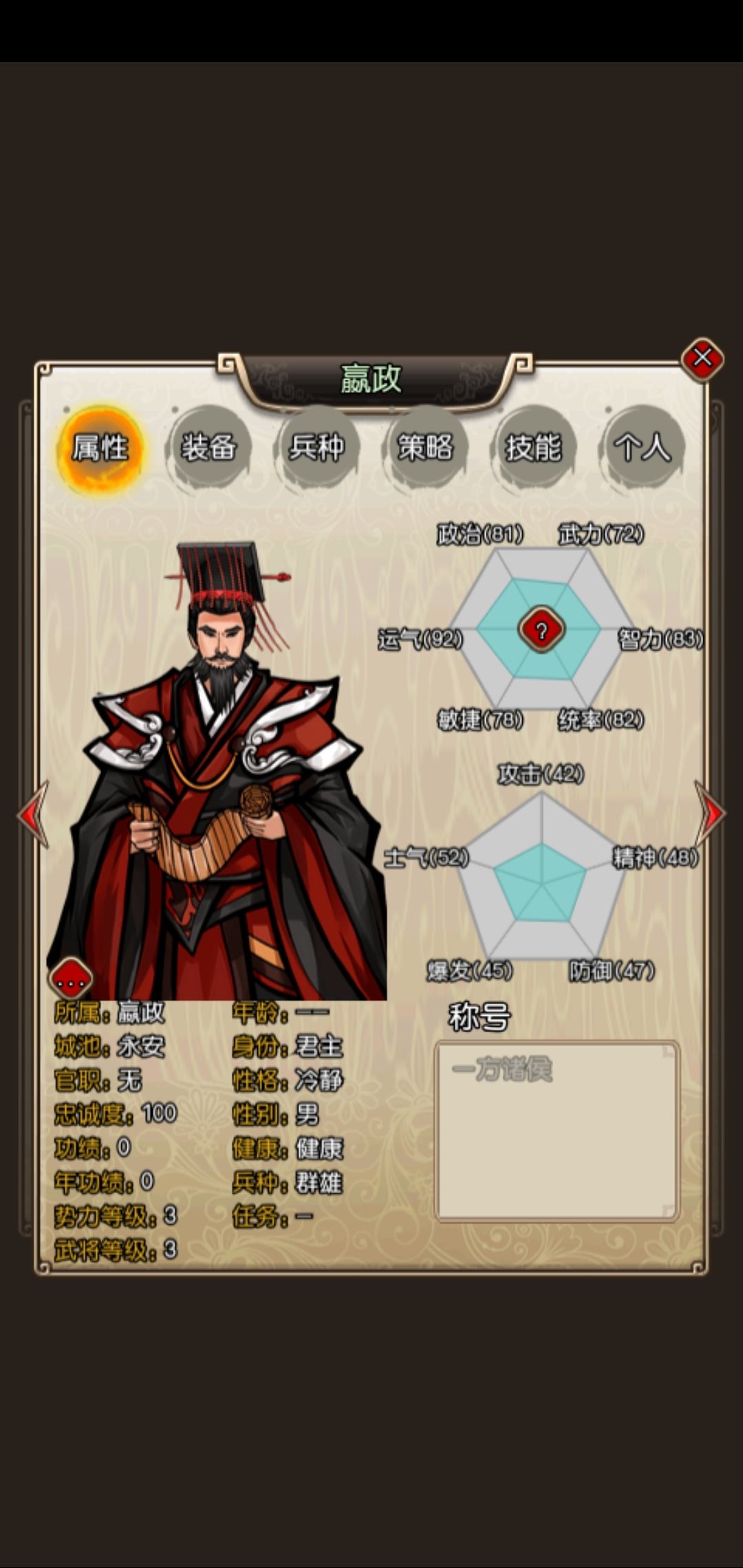 再来一位大佬,不用过多介绍吧,著名的汉武大帝比开国皇帝名气还高,常年进历史皇帝前三。游戏属性给的实在过分