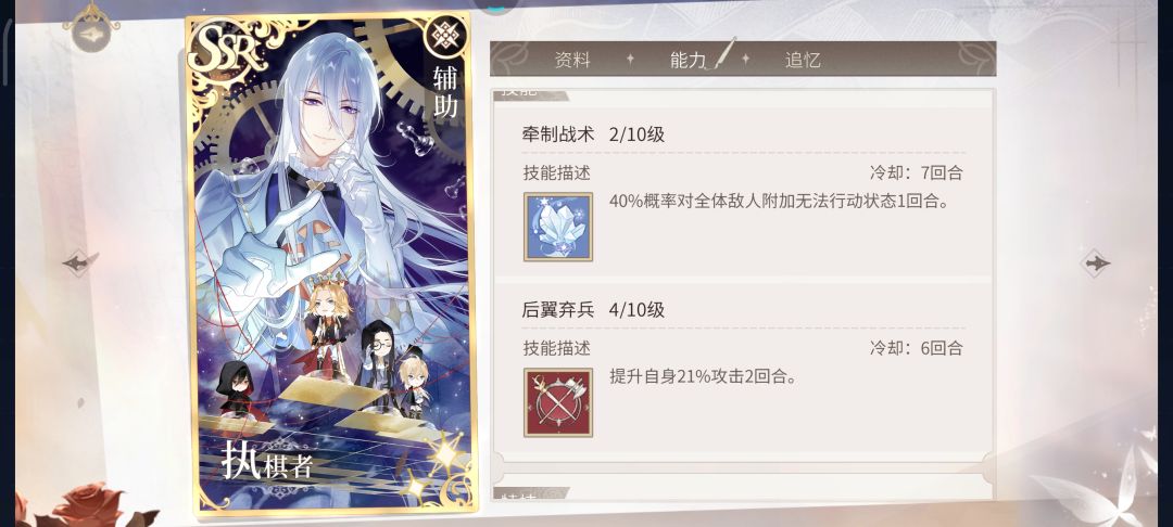 ·特技: 附加降低特技增长率debuff,若卡组伤害不够可以放前面然后后面的攻击把对面特技打出来慢点。