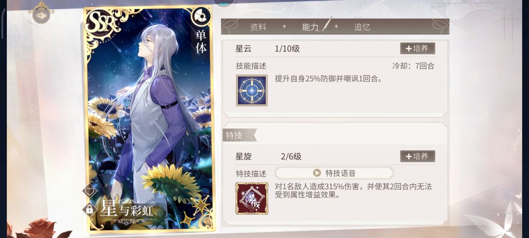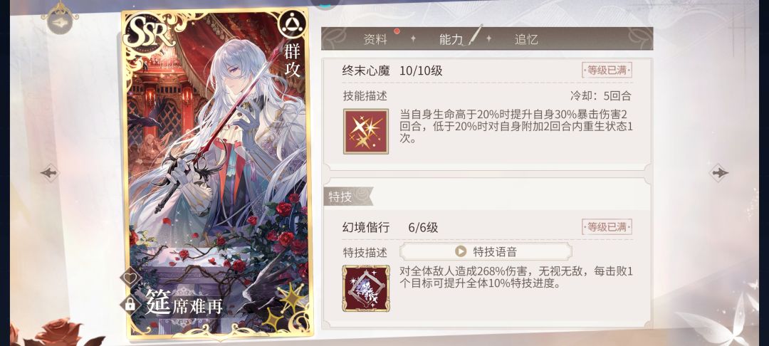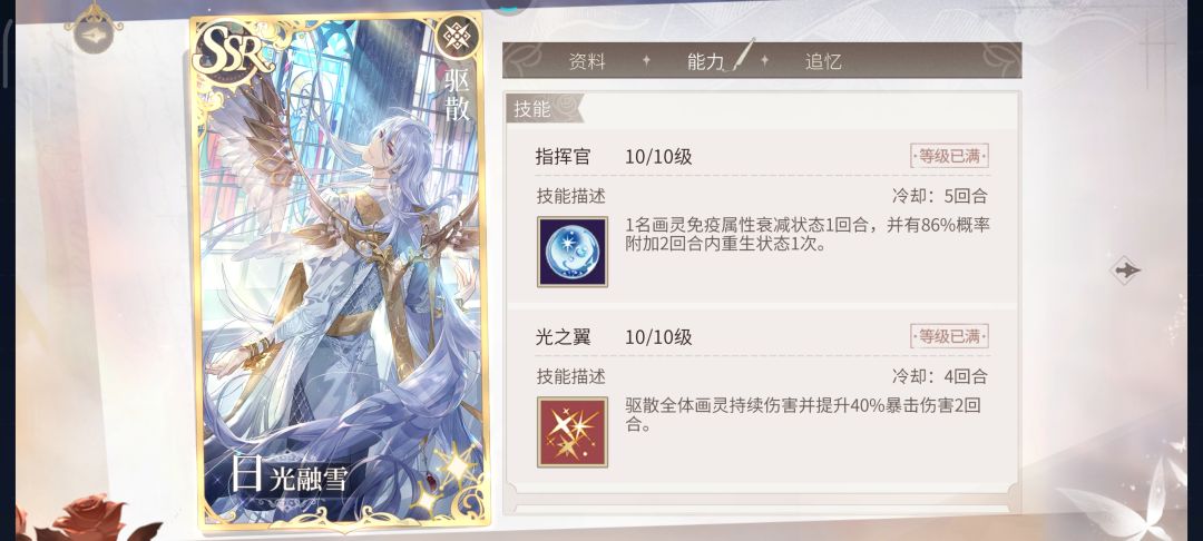 特技倍率表现不错,重生技能增加生存能力,在后期针对于有持续debuff的关卡可以灵活驱散。