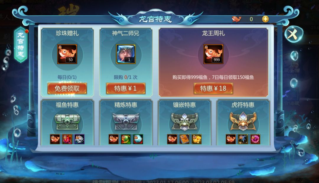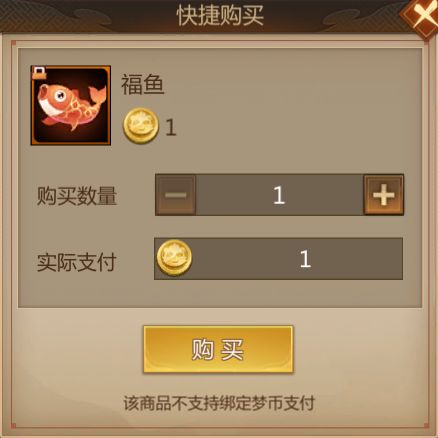 获取福鱼的途径多种多样,可以通过商城、齐天大圣三大礼包以及龙宫特惠礼包获得,参与珍宝活动,降妖福册活动,取经大作战活动获取,或是在活动页面可直接购买(1梦三币=1福鱼),梦梦会在后续的春节活动攻略指南中为大家重新梳理一遍哦~
