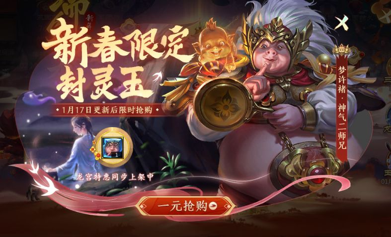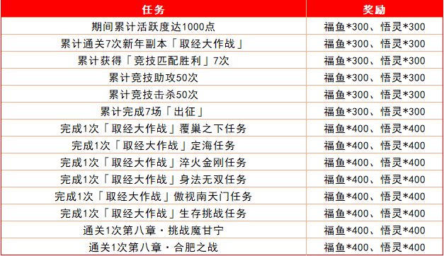 在这次活动中,好礼升级,三份新年礼包,诚意满满;取经大作战,玄奘法师再梦西行,跨千山万水,降妖除魔取真经!还可以在降妖福册活动中获取福鱼,在天庭福市中兑换精美奖励,1月17日,正式登场!