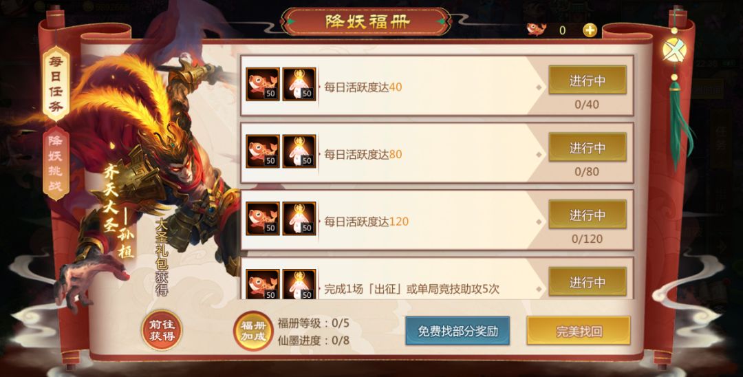 完成降妖福册任务可获得福鱼、悟灵和仙墨进度,相关作用梦梦会在后文中为大家揭晓。