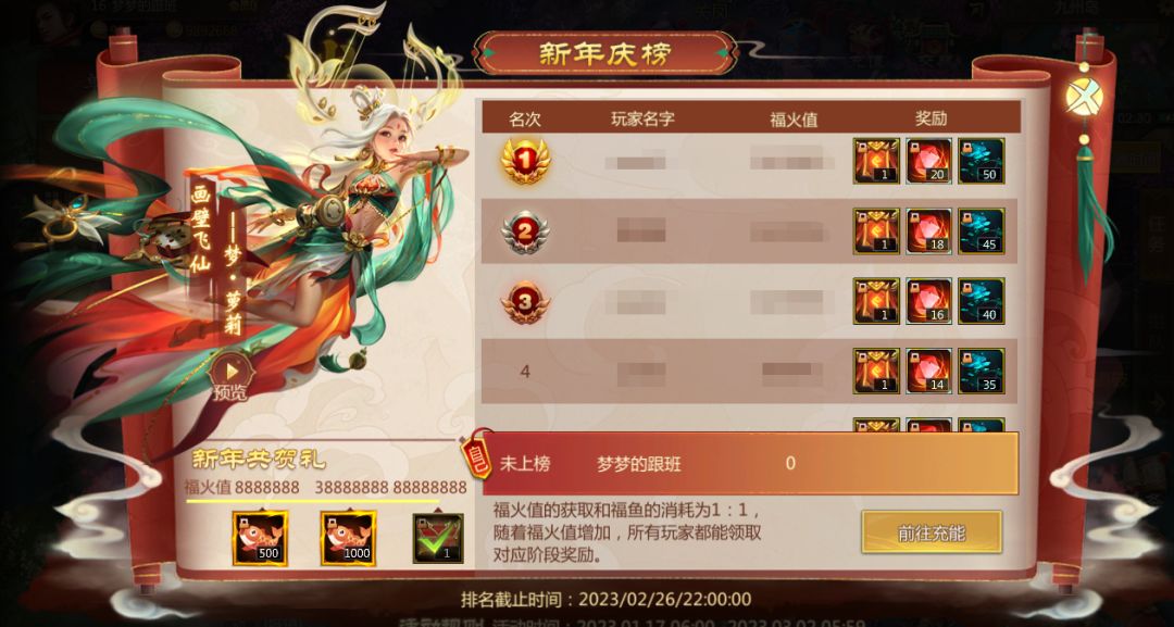 此外福火值排行榜单截止日期为2023年2月26日22:00,时间截止后排行榜排名将不再发生变化~