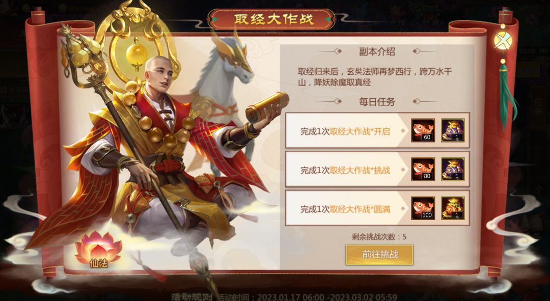 参与取经大作战可获得福鱼等奖励。