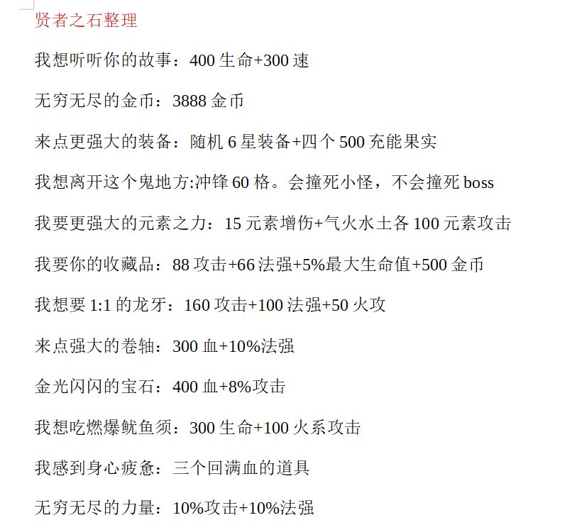(不摆烂攻略组)贤者之石选项一览