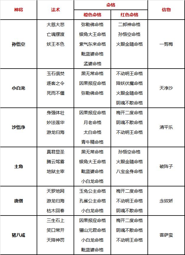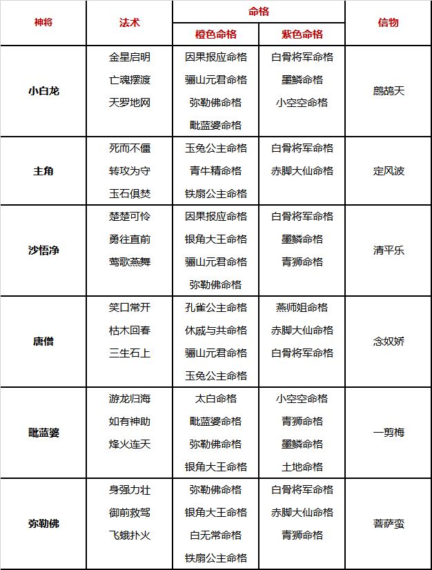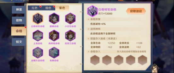 命格:前期就是有紫带紫,橙色命格要集中收集适合上阵神将的,以及考虑是否能跟法术做一些搭配,比如阴魂不散命格跟白骨夫人法术就可以联动产生效果,命格搭配得好,才能发挥出神将最大的作用。
