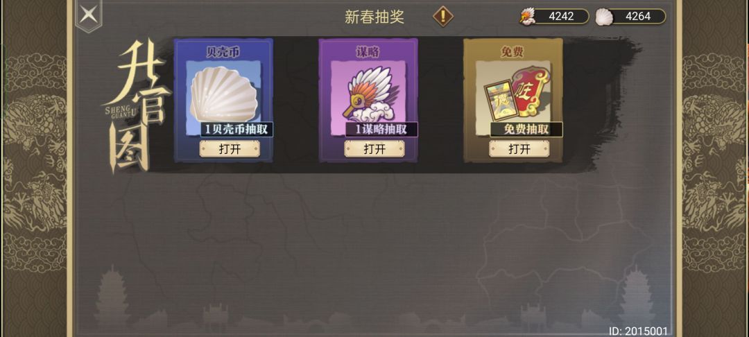 ◆档位二:消耗1谋略值进行1次抽奖,每日限1次