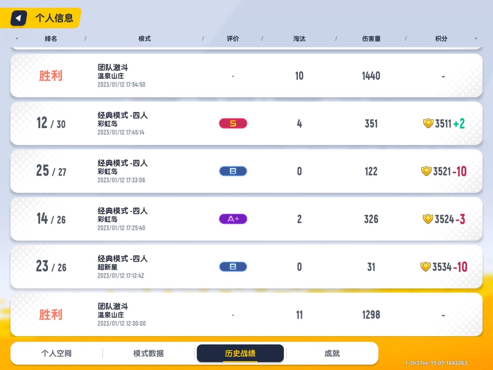 自从我弟黄龙儿会打几个人机,我真是天天被他拉着掉分😭。终于有一天,这个人不肯写作业,没的玩了,我总算可以自由了🥳。第三张图为今年第一把鸡,太不容易了……