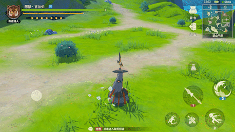 【尘拂】:长按轻攻击消耗1格能量和少量体力发动,向前投枪并化为影雾瞬移至投枪方向的位置并且画出圆斩。这招作为突进或者逃跑,都是很有效率的。