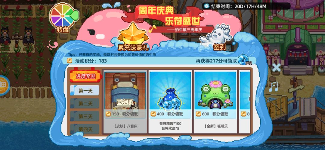 2.周年庆重复获得的会自动转化为奶牛币